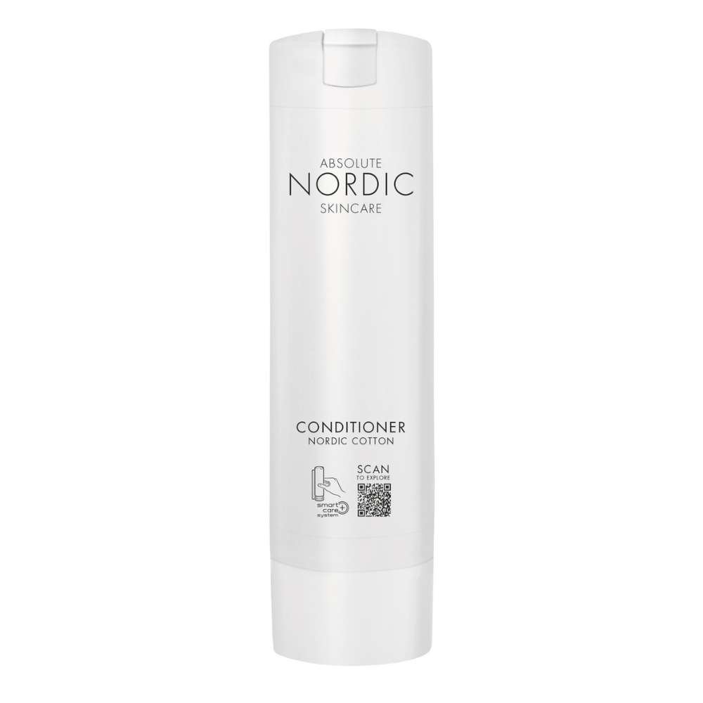 El Acondicionador 300ml para hoteles Absolut Nordic – Smart Care es un producto pensado para brindar una experiencia de cuidado personal que combina la naturaleza escandinava con la máxima funcionalidad y sostenibilidad. Certificado con la etiqueta Nordic Swan Ecolabel, refleja el compromiso de Absolut Nordic con el medio ambiente, siendo ideal para hoteles que buscan ofrecer a sus huéspedes lujo sostenible.
