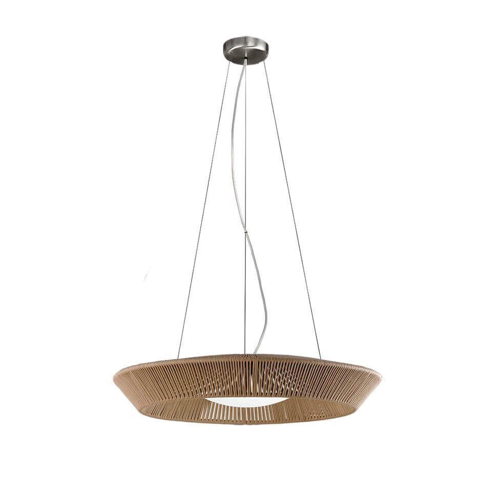 Lámpara colgante con pantalla de Ø75 cm de cuerda fabricada con botellas de plástico recicladas, trenzada artesanalmente. Con difusor de cristal satinado.