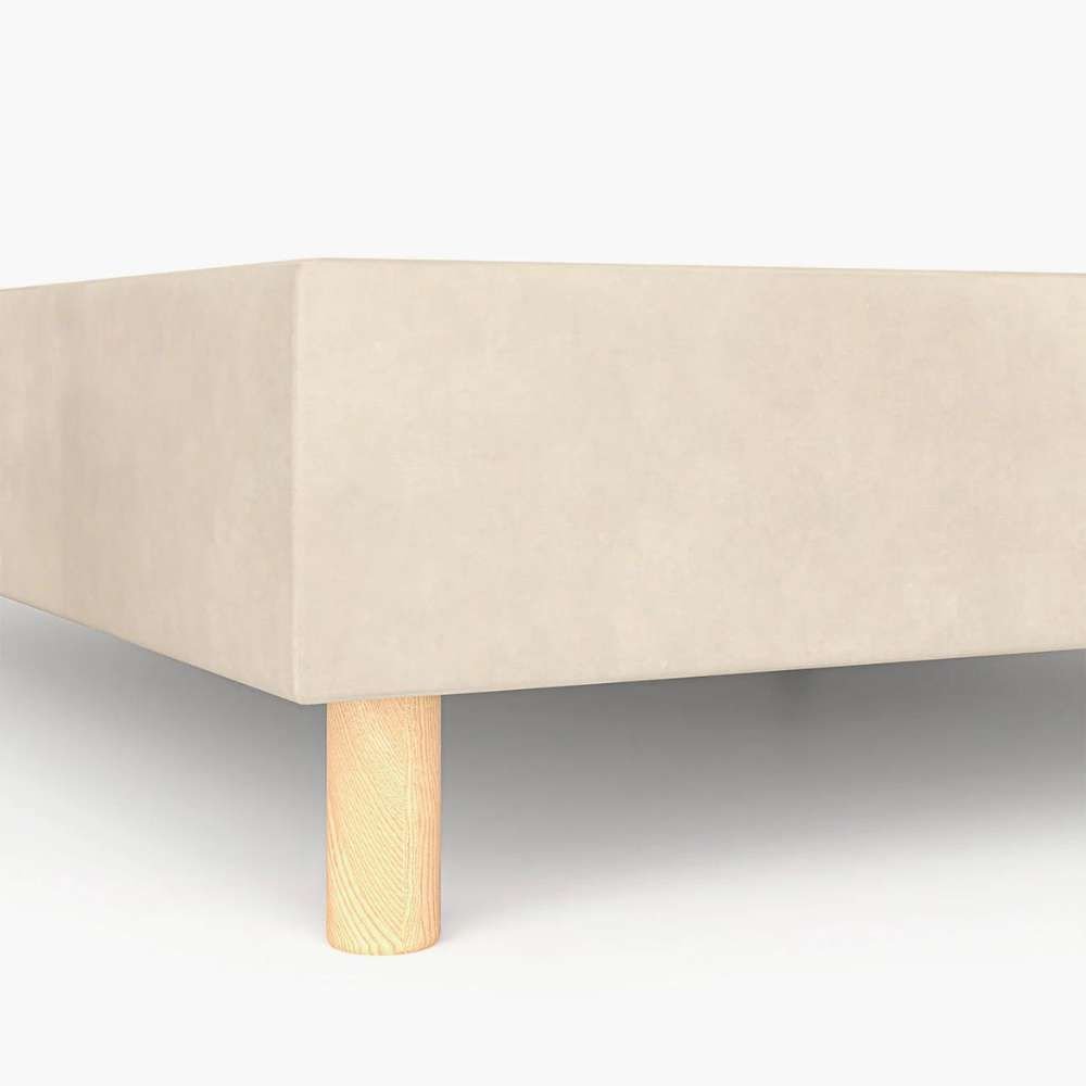• Las patas nórdicas de madera añaden un toque de naturalidad y estabilidad, completando el aspecto elegante y funcional de la base. Además, para las medidas más grandes, como 180×200 y 200×200, el tablero está dividido en dos mitades para facilitar su transporte y montaje, asegurando una firmeza óptima con pletinas y patas adicionales.