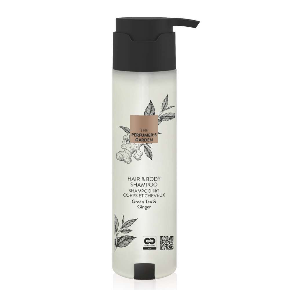 El diseño moderno y elegante de la gama se adapta perfectamente a cualquier baño, mientras que el Gel corporal y capilar suave y revitalizante, basado en una fórmula probada en el tiempo y contenido en un embalaje mono-material reciclable, garantiza una experiencia de cuidado personal que conjuga lujo y responsabilidad. Con The Perfumer’s Garden, la belleza y la sostenibilidad convergen, ofreciendo una experiencia que cautiva los sentidos y respeta el planeta.Champú cuerpo y cabello 300ml para hoteles