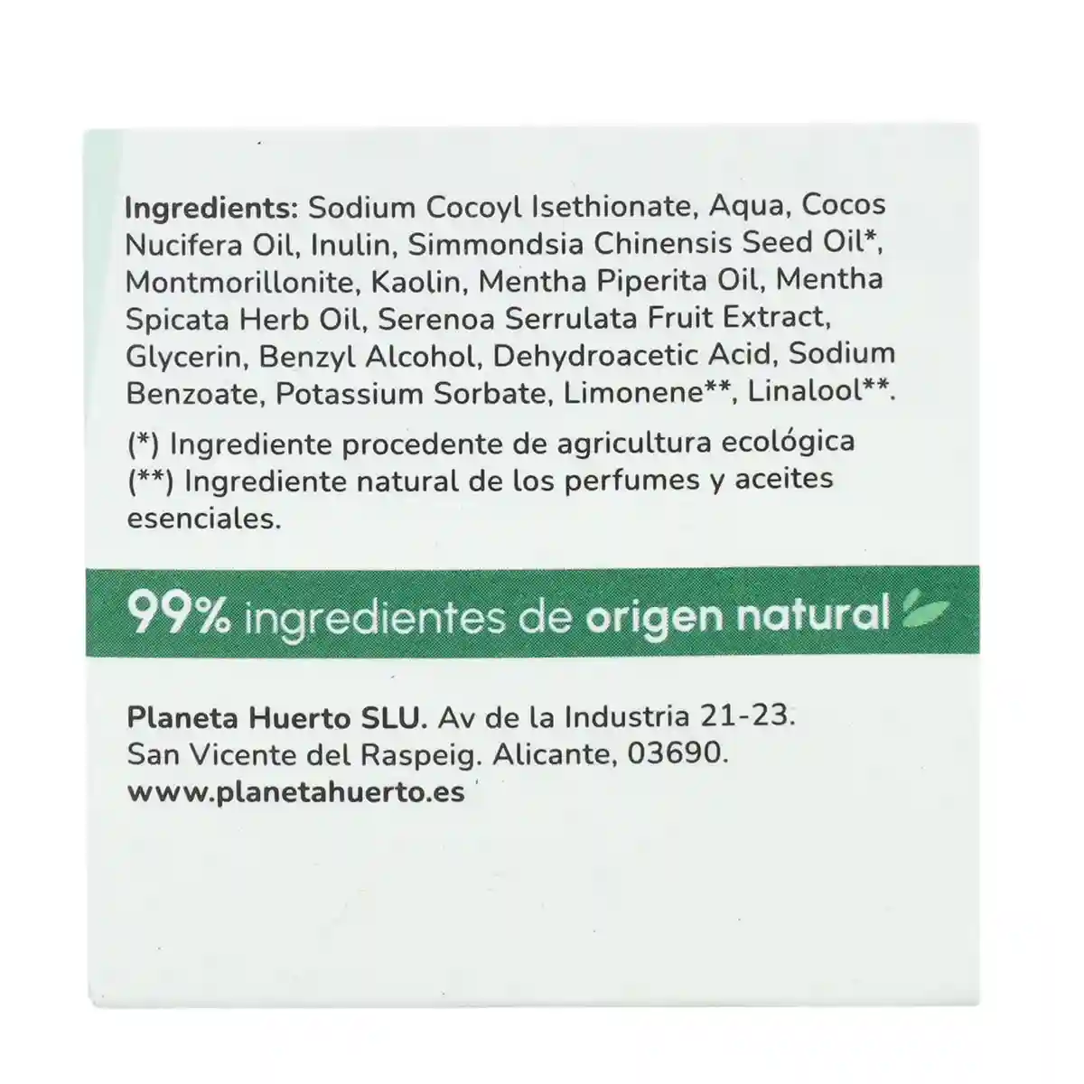 Sodium Cocoyl Isethionate, Aqua, Cocos Nucifera Oil*, Inulin*, Simmondsia Chinensis Seed Oil*, Montmorillonite, Kaolin, Mentha Piperita Oil, Mentha Viridis Leaf Oil, Serenoa Serrulata Fruit Extract, Glycerin, Sodium Benzoate, Potassium Sorbate, Limonene**, Linalool**