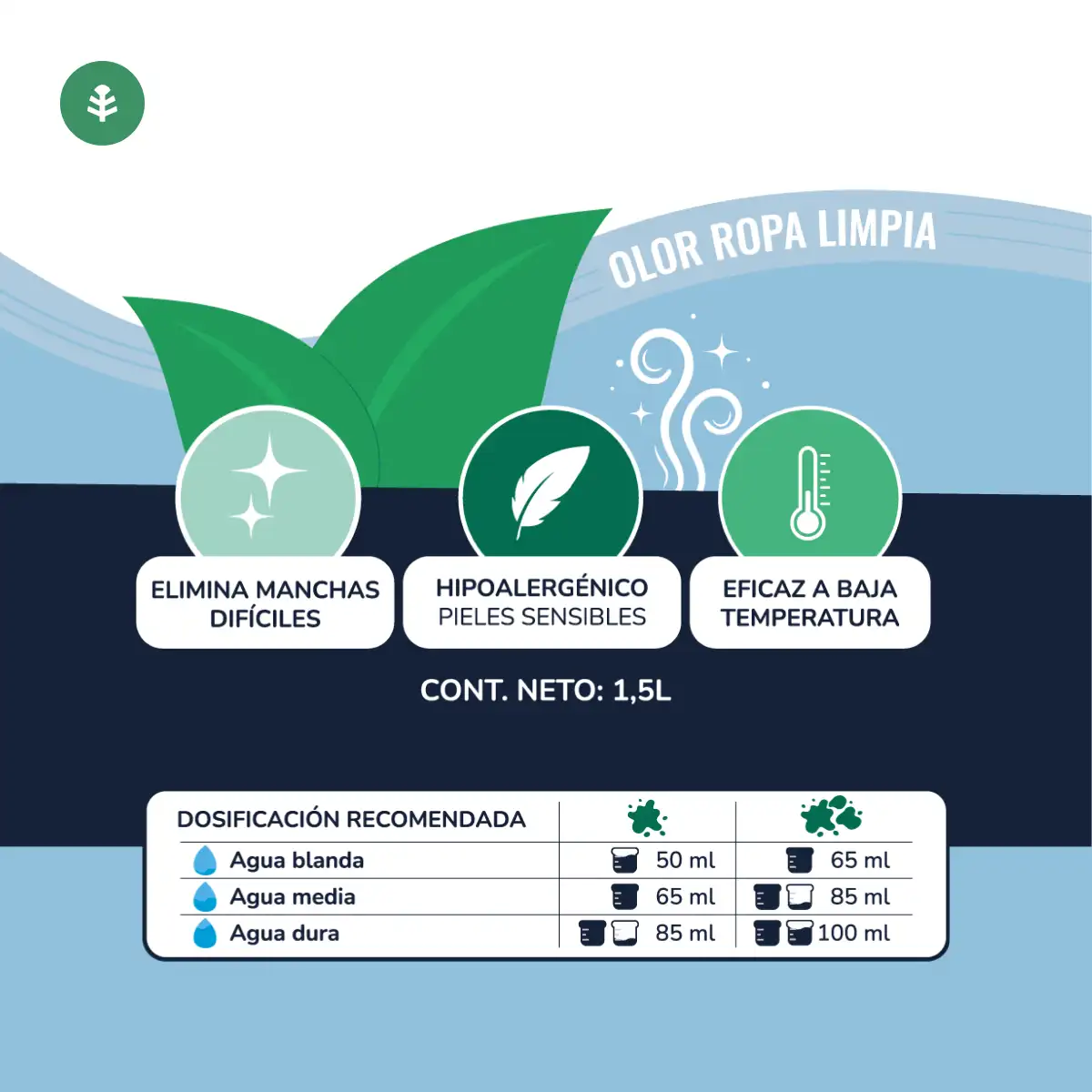 Detergente Líquido Ropa Eco (Aroma natural a ropa límpia) 1,5 Litros