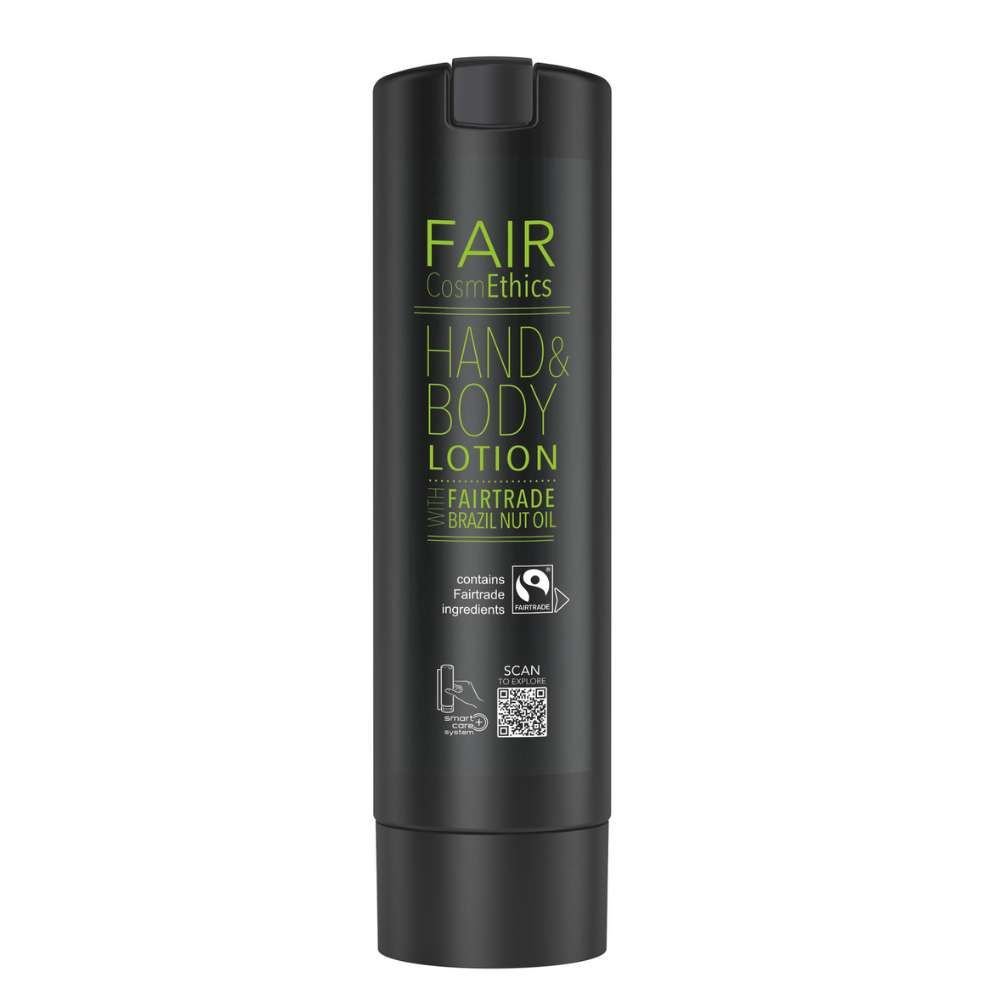 Fair CosmEthics emerge como una destacada colección de amenities, fusionando calidad, sostenibilidad y responsabilidad social. Con una formulación a base de plantas, la loción para manos y cuerpo 300ml para hoteles Fair Cosmethics desprende un cautivador aroma afrutado y fresco, teñido de notas florales y alegres, equilibradas con toques cálidos y amaderados que confieren una singular expresividad sensorial.