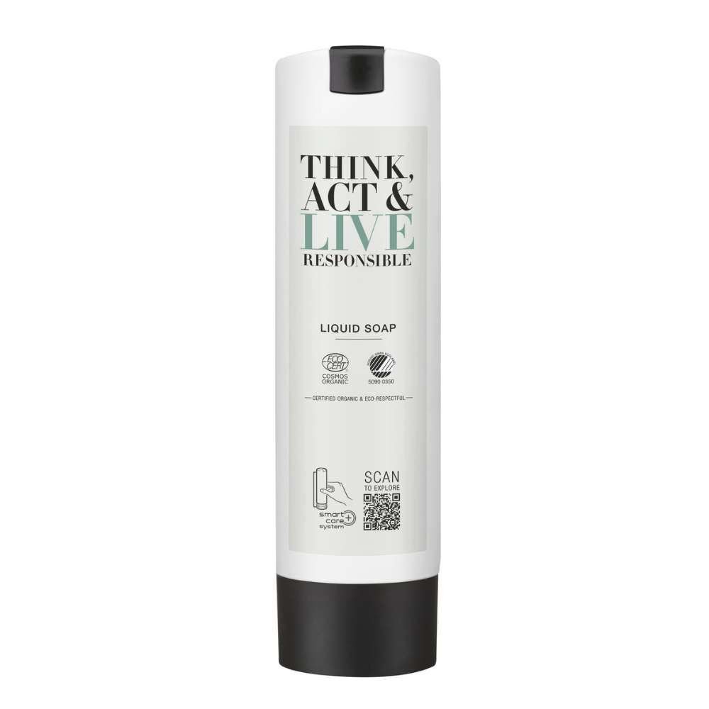 El Jabón Líquido 300ml para Hoteles Think Act & Live – Smart Care invita a cada establecimiento hotelero a adoptar prácticas más sostenibles y responsables, ofreciendo a sus huéspedes no solo un producto de alta calidad, sino también la oportunidad de contribuir al cuidado del planeta.