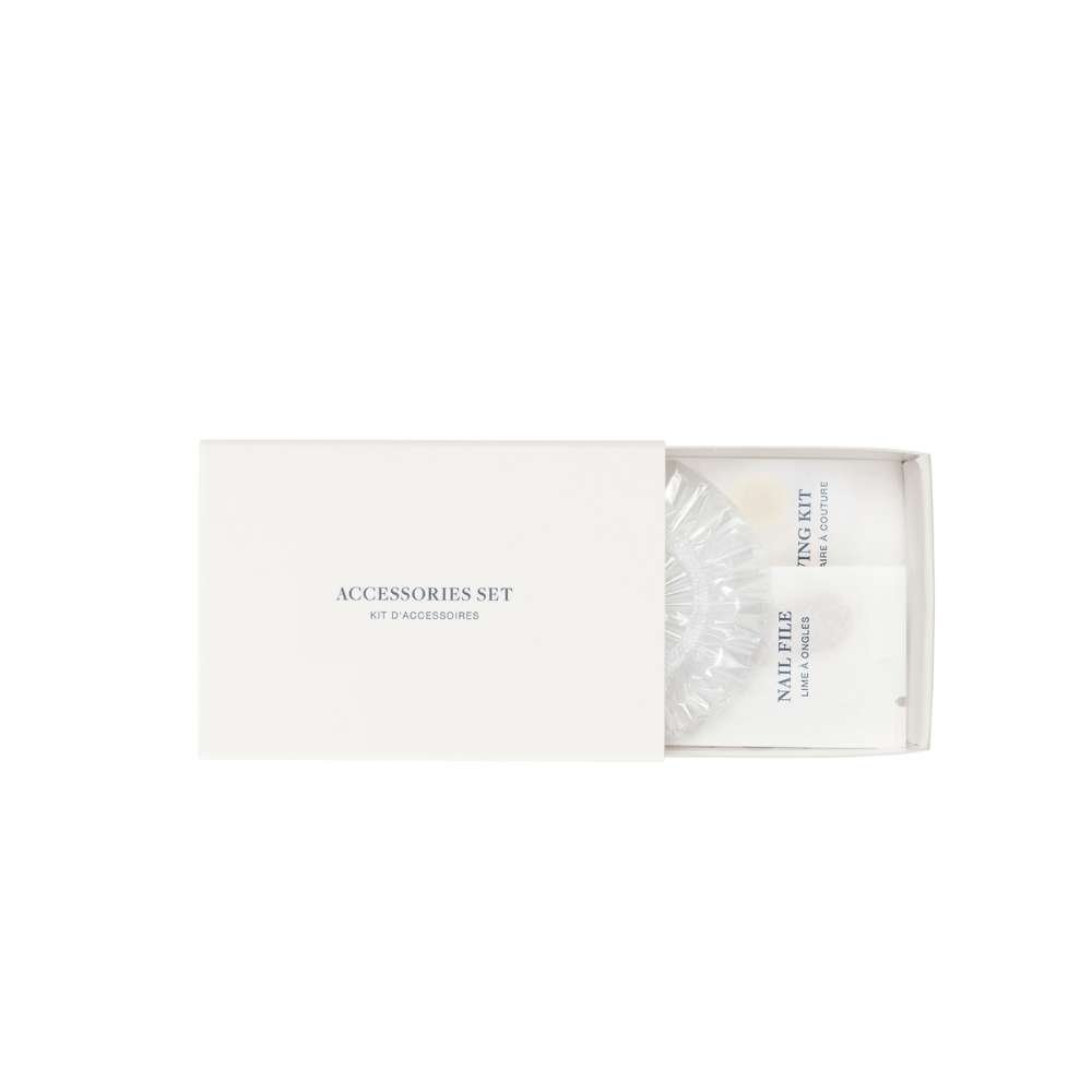 1x lima de uñas, 1x set de costura, 1x gorro de ducha, 1x Kit cosmética