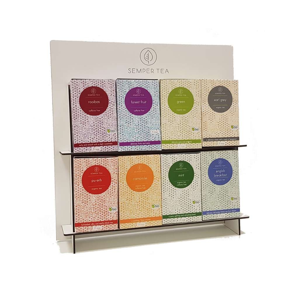 8x Estuches con 25 sobres de cada sabor (total 1600 sobres de té)