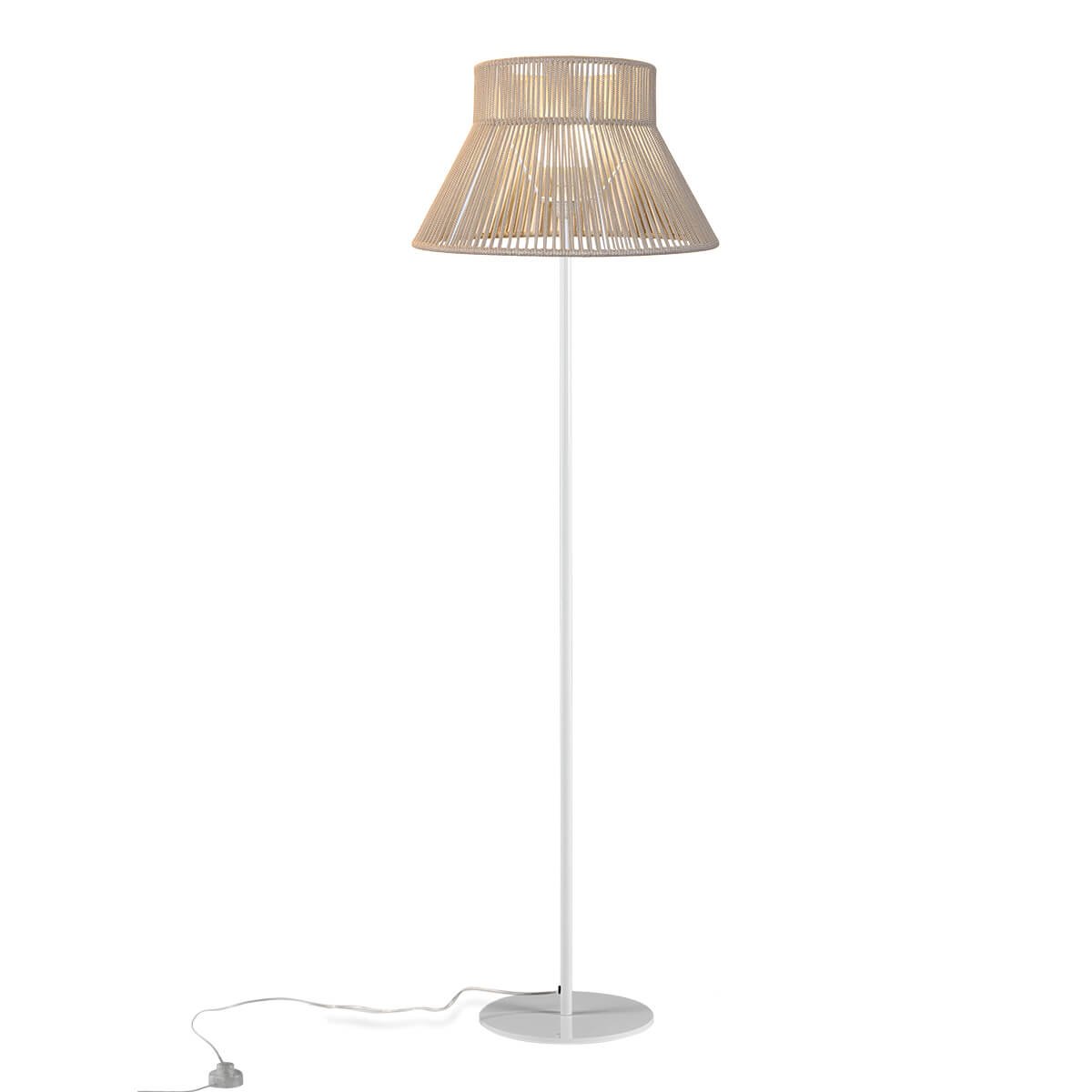 Lámpara de pie con pantalla de Ø50 cm de cuerda fabricada con botellas de plástico recicladas trenzada artesanalmente.