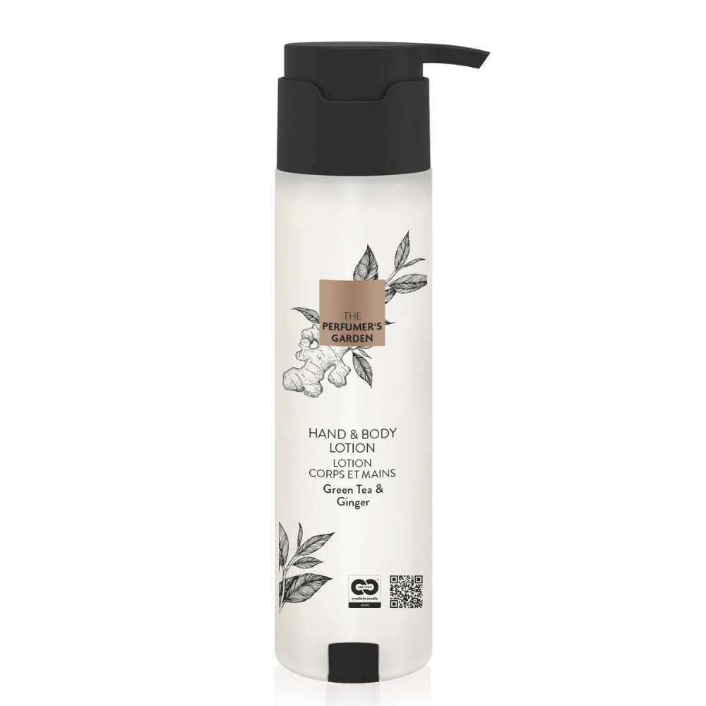 El diseño moderno y elegante de la gama se adapta perfectamente a cualquier baño, mientras que el Gel corporal y capilar suave y revitalizante, basado en una fórmula probada en el tiempo y contenido en un embalaje mono-material reciclable, garantiza una experiencia de cuidado personal que conjuga lujo y responsabilidad. Con The Perfumer’s Garden, la belleza y la sostenibilidad convergen, ofreciendo una experiencia que cautiva los sentidos y respeta el planeta.Locíon para manos y cuerpo 300ml para hoteles