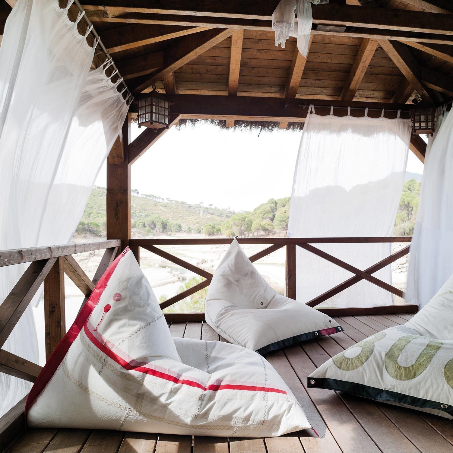 Estas velas se utilizan para transformarlas en pufs. Su especial diseño aplica la geometría de un tetraedro para darles respaldo, dando como resultado un sofá extraordinariamente estable y cómodo.