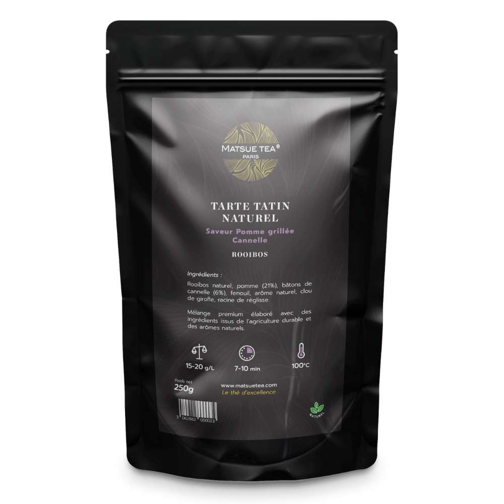 La infusión de rooibos natural TARTE TATIN de calidad PREMIUM de MATSUE TEA es una deliciosa mezcla que te encantará con sus notas de manzanas, ramas de canela y aromas naturales de tarta tatin. Esta mezcla de alta calidad proviene de la agricultura sostenible, lo que la hace no solo deliciosa sino también respetuosa con el medio ambiente.