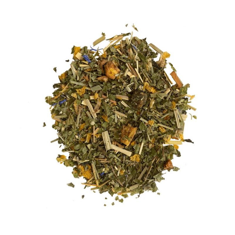 Ingredientes: Manzana, zarzamora, hierba limón, ortiga, espino amarillo, moringa (7%), salvia, aromas naturales, mango (3%), manzanilla, aciano, matcha (1%) y aroma natural de bergamota